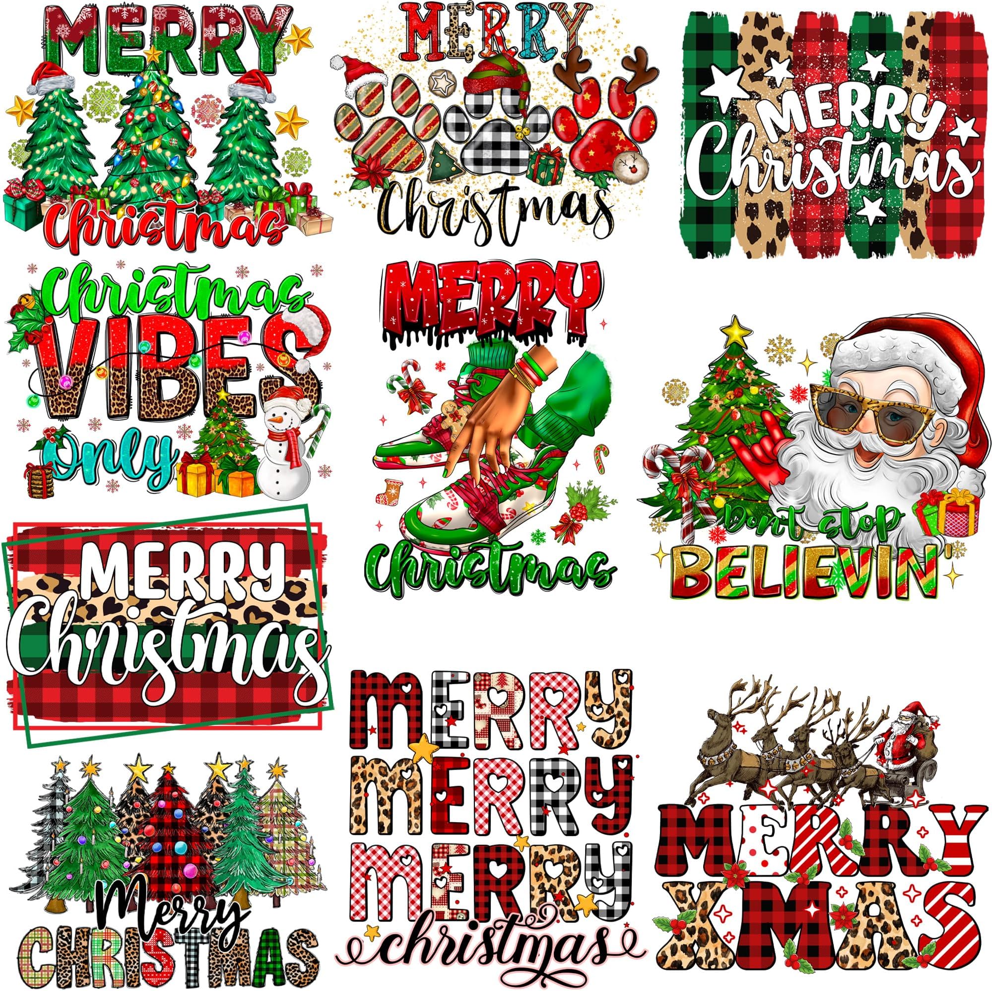 10pcs Christmas Iron On Transfer for T-Shirts Heat Transfers Vinyl Patches Ready to Press Decals for Clothing Backpack Washable Iron On Decal Merry Xmas DIY Decoration Small Size
