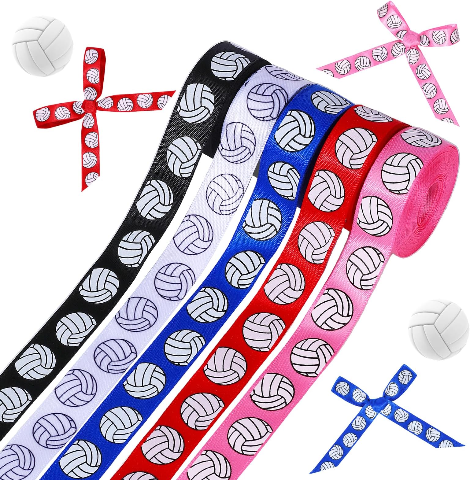 5 Rolls 25 Yards Volleyball Ribbon - 0.63 Inch Sports Themed Craft Ribbon for DIY Projects, Gifts, Tournaments & Team Decorations