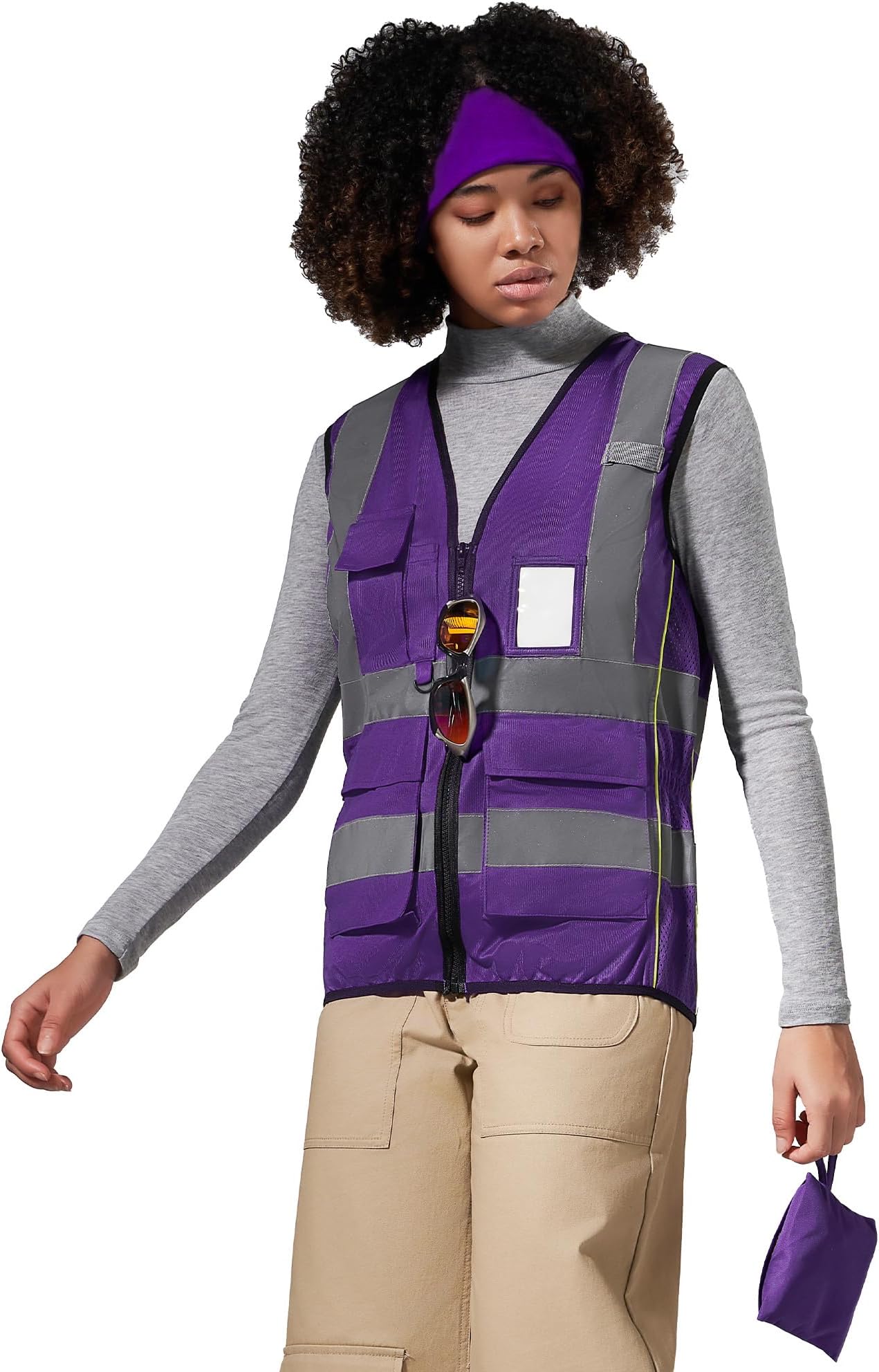 A-SAFETY High Vis Safety Vest for Women – Reflective Strips, Multi-Pockets, Zipper Closure