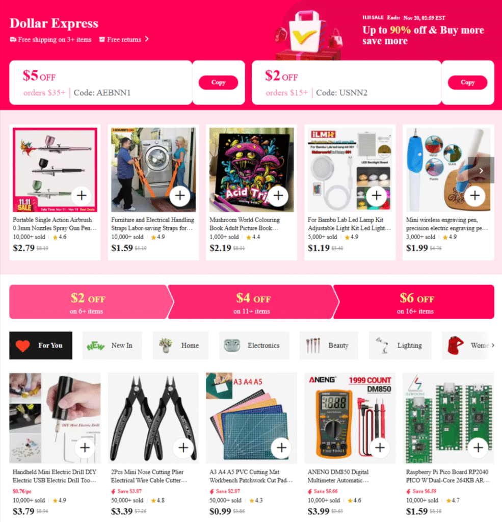 3 items minimum (doesn’t matter the price) to get free shipping. Addition bonuses as you bulk up. Codes (see previous post) work on these listings, and they are nice enough to include a couple more on the page 🙂