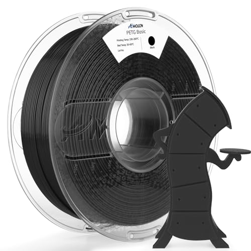 AMOLEN Rapid PETG Basic 3D Printer Filament 1.75mm +/-0.02mm,500mm/s High Speed Strong Toughness Black 1KG/2.2lb