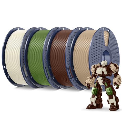 SUNLU 4KG 3D Printer Filament PLA Plus 1.75mm, SUNLU Neatly Wound PLA Filament 1.75mm PRO, PLA+ Filament for Most FDM 3D Printer, 1 kg Spool, 4 Packs, Bone White+Olive Green+Coffee Brown+Oak