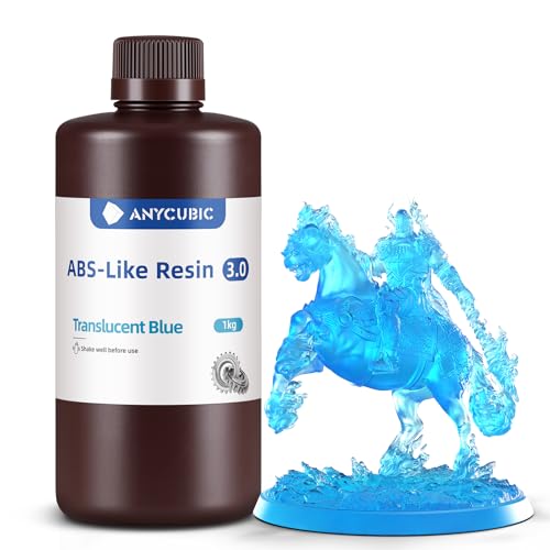 ANYCUBIC 3D Printer Resin, ABS-Like 3.0 Resin for 8K/14K/16K 3D Printing, Strong Strength, High Precision, Low Odor, Wide Compatibility for All LCD Resin 3D Printers (Clear Blue, 1kg)