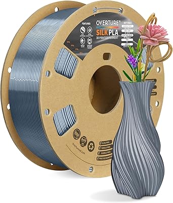 27 – OVERTURE Silk PLA Filament 1.75mm, Clog-Free Shiny, Metallic Shine 3D Printer Filament, 1kg Spool (2.2lbs), Ideal for Cosplay Jewelry & Home…