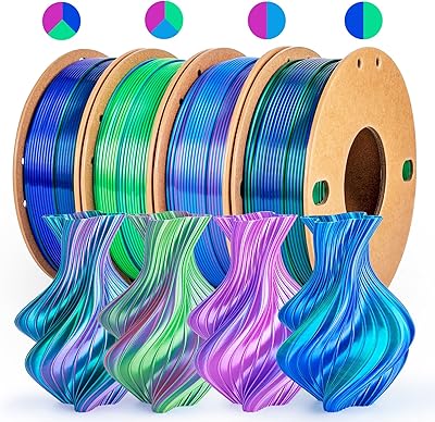 20 – dikale Silk PLA+ Pro 1.75mm 3D Printer Filament – 4 Spool Multi-Color Bundle (250gx4) with Rose Red/Sky Blue/Green/Dark Blue- Tri-Color & Du…
