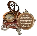 Trust in The Lord -Proverbs 3: 5-6 Quote Engraved Compass Christian Religious Gifts | Camping Compass Inspirational Men Women Catholic Graduation Gift Boys Girls