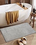 Bathroom Mat Grey Waffle Bath Mat Non-Slip Washable Bath Rug Rubber Bathroom Mat Carpet for Tub Soft Rugs for Shower, 32" x 17" (Grey, 17 * 32 inch)