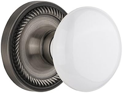 Nostalgic Warehouse Rope Rosette with White Porcelain Knob, Single Dummy, Antique Pewter