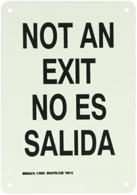 Brady 90691 10″ Height, 7″ Width, B-347 Plastic Black On Green Color Glow-In-The-Dark Safety Sign, Legend “Not An Exit/No Es Salida”