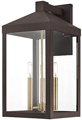 Livex 20585-07 Transitional Three Light Outdoor Wall Lantern from Nyack Collection in Bronze/Dark Finish
