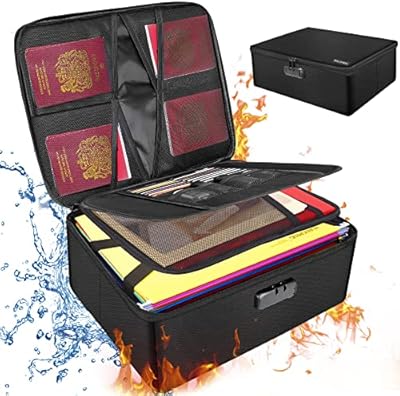 BALAPERI Fireproof Document Bag with Lock, Collapsible Important Document Organizer for Travel Home Office, Portable File Organizer Storage Case for A4 A5 Legal Letter Size Docume…
