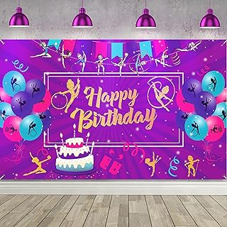Gymnastics Birthday Banner Backdrop Party Decoration Gymnastics Theme Happy Birthday Photo Background for Gymnast Girls Women Birthday Anniversary Baby Shower Dance Olympics Party…