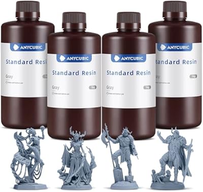 ANYCUBIC 3D Printer Resin Bundle, 405nm SLA UV-Curing Resin with High Precision and Quick Curing & Excellent Fluidity for LCD 3D Printing (4Packs*1kg Grey, 4kg in Total)
