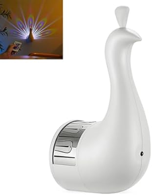 KYWYOYOU Peacock Lamp, Peacock Wall Light, 7 Color Ambient Peacock Light with Remote Control, USB Rechargeable Peacock Night Light for Home Decoration(White)