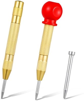 2PCS Heavy Duty Automatic Center Punch with an Extra Replacement Tip, 5” Premium Steel Spring Loaded Center Hole Punch Steel Adjustable Marker Punches Tool for Metal, Wood, Plast…