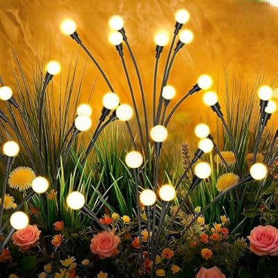 KKB Solar Lights Outdoor Waterproof, 4 Pack 32 LED Swaying Firefly Lights, Waterproof Big Bulb Solar Lights for Yard Pathway Patio Decor, Unique Gardening Gifts for Women & Grandma