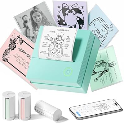 TYPONOS Sticker Printer, PM290 Mini Sticker Printer Portable Bluetooth Sticker Maker Machine with 3 Rolls Paper, Print Pods Mini Printer for Phone & Tablet, DIY Gifts for School O…