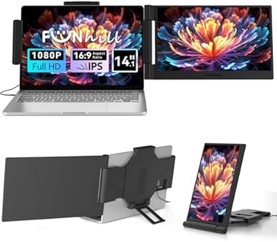 Laptop Screen Extender 14 inch Laptop Monitor Extender 1080P IPS, 280° Rotation Portable Monitor for Laptops 13-17.3″ with USB-C DP/HDMI Port, Plug-Play Dual Screen for Windows/Ma…