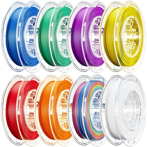 AOSEED 3D Printer Filament Bundle, 1.75mm (± 0.03 mm) PLA Filament Set for Most of 3D Printer,Purple/Green/Blue/Yellow/White/Iridescent/Red/Orange, 200g/0.44lbs x 8 Spools Pack