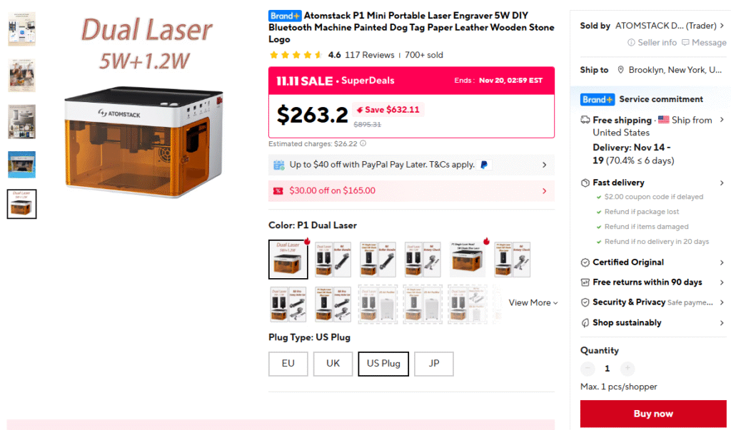 Price after code USDEAL44 at checkout, and $25 off PayPal discount.