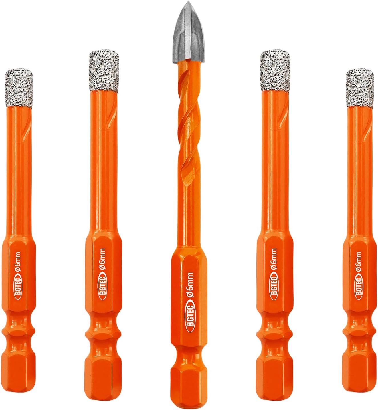 BGTEC Diamond Drill Bits Set Core Drill bit with Quick Change Hex Shank, 5pcs 1/4″*4 Tile Drill Bit+1/4″ Carbide Drill Bit for Ceramic Tile Porcelain Tile Marble Granite