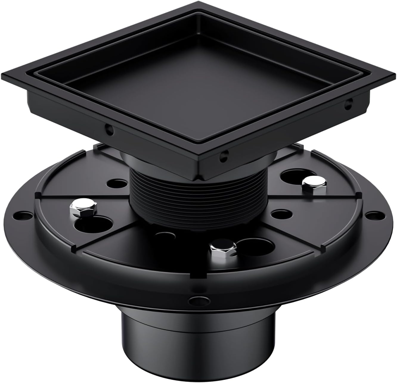 Bmvlffs 6 Inch Shower Drain Matte Black with Tile Insert Grate, Floor Drain Brushed 304 Stainless Steel, Including Hair Strainer