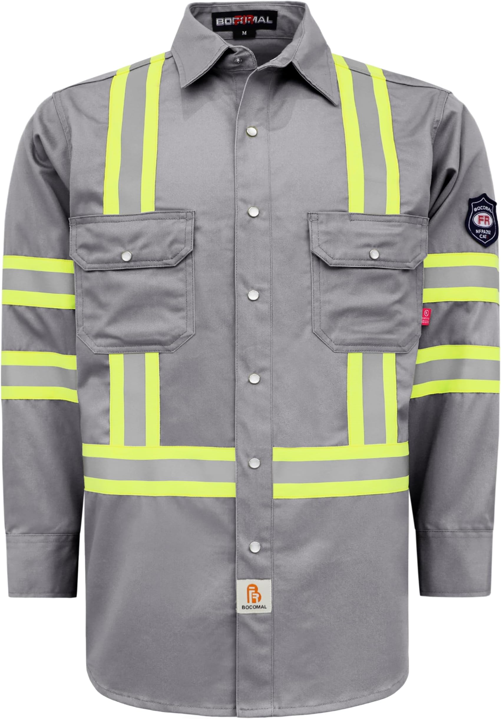 BOCOMAL FR Shirts High Visibility/Hi Vis Flame Resistant/Fire Retardant Shirt 7.5oz Men’s Reflective Shirts