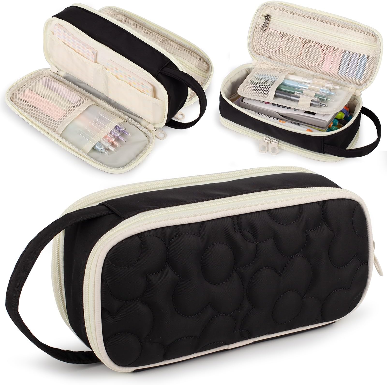 Bunnychill Pencil Case For Girls,Flower Quilted Large Capacity Pencil Pouch With 2 Compartment, Zipper Pencil Bag With Handle, Women Soft Pencil Box For Middle School Office College