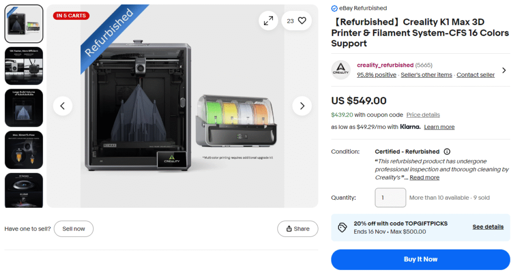 Not a bad deal if you need the CFS for another machine, etc. If you plan to use the K1 Max and CFS combo, you’ll still need an adapter (around $40’ish) to make it all work together.