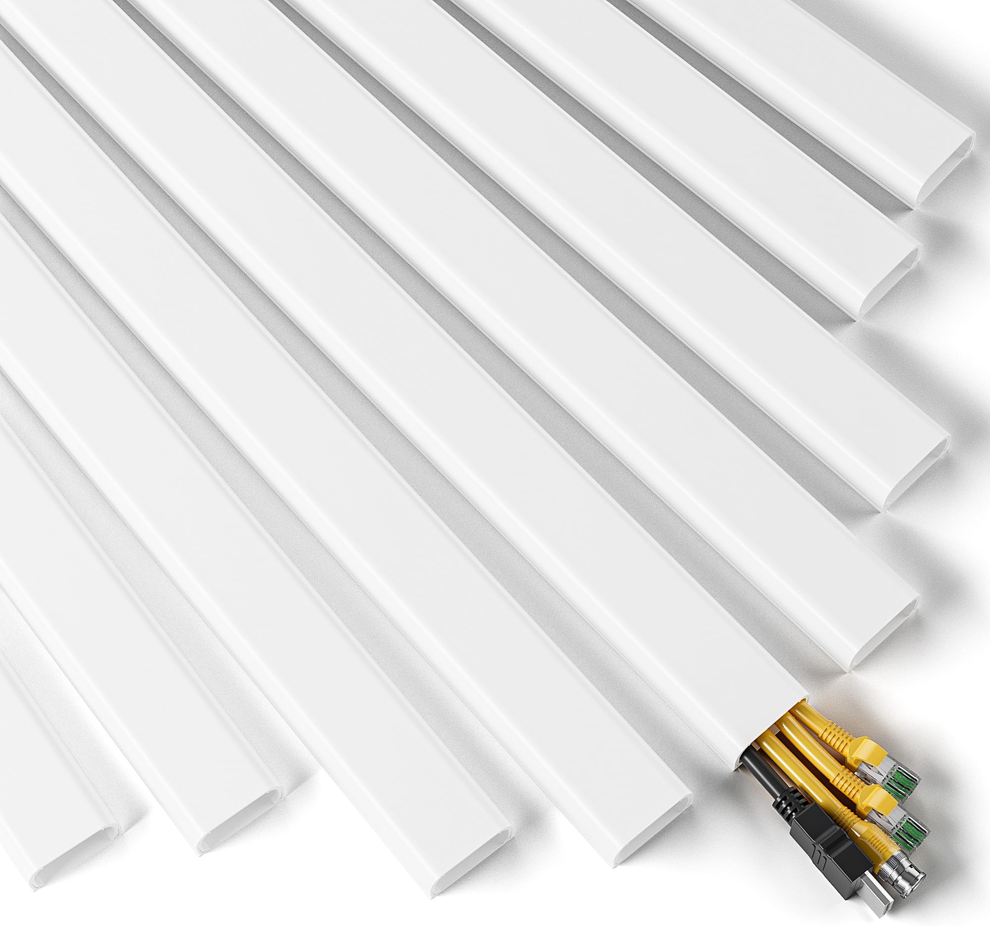 Delamu 142in Cable Hider Cord Hider, Cord Covers for 3-4 Wires on Wall, PVC Wire Hider Covers for Cords on Wall, Easier Setup Cable Cover Management, W1.18 H0.63in, White
