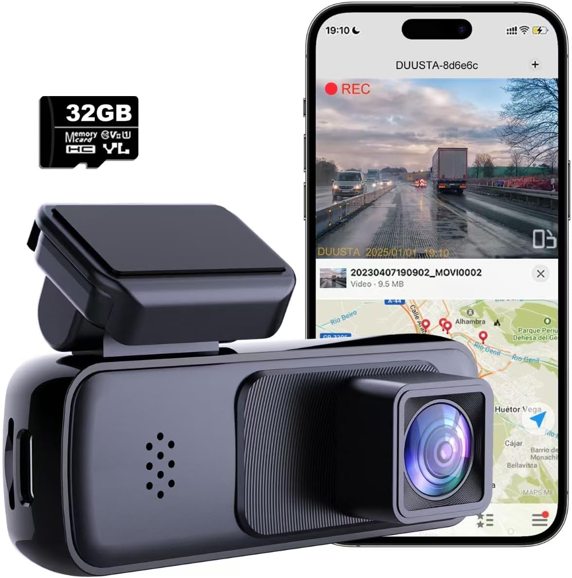 DUUSTA Dash Cam Front, 2K/1440P QHD Dash Camera for Cars Free 32GB Card Included, 170° Wide Angle WDR Dashcams Mini Built in WiFi & APP Control, Night Vision, G-Sensor, Loop Recording