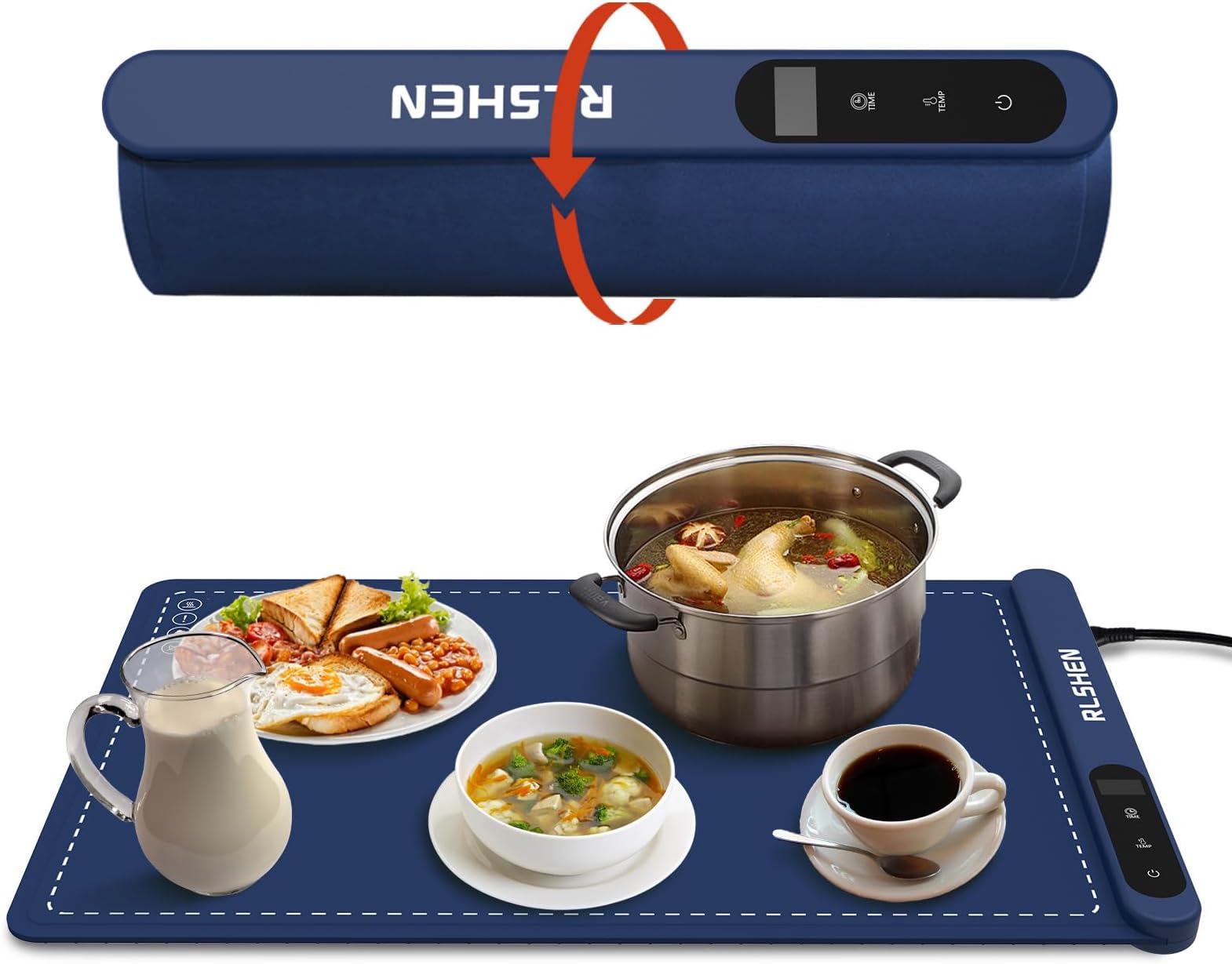 Electric Food Warming Mat with 6 Adjustable Temperature Control, Premium Silicone Nano-Material Foldable Quick Heating Plate, Food Warming Tray for Restaurants, buffets Party, Dinner (Blue)