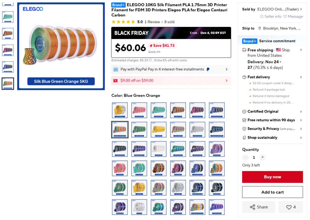 ELEGOO Dual Color Silk PLA 5 packs (5kg).