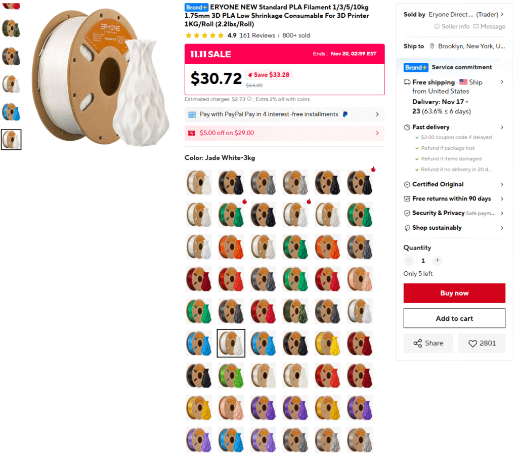 Very nice listing… good prices, nice color selection, etc.