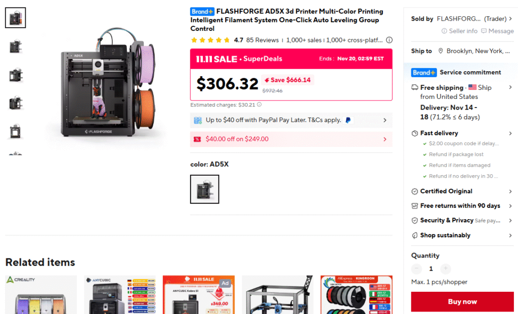 Price after code AEUS56 at checkout, and $40 off PayPal discount.