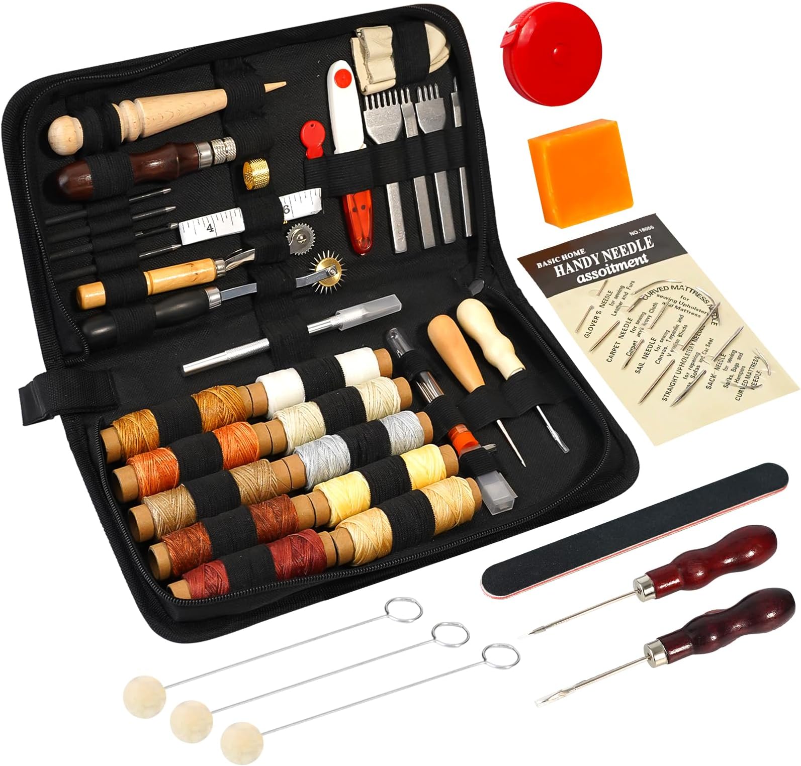 FNV Leather Sewing kit, Leather Stitch with Waxed Thread, Needles, Awls and Hand Stitching Tools. Suitable for Adults DIY Gifts, Home DIY Work.