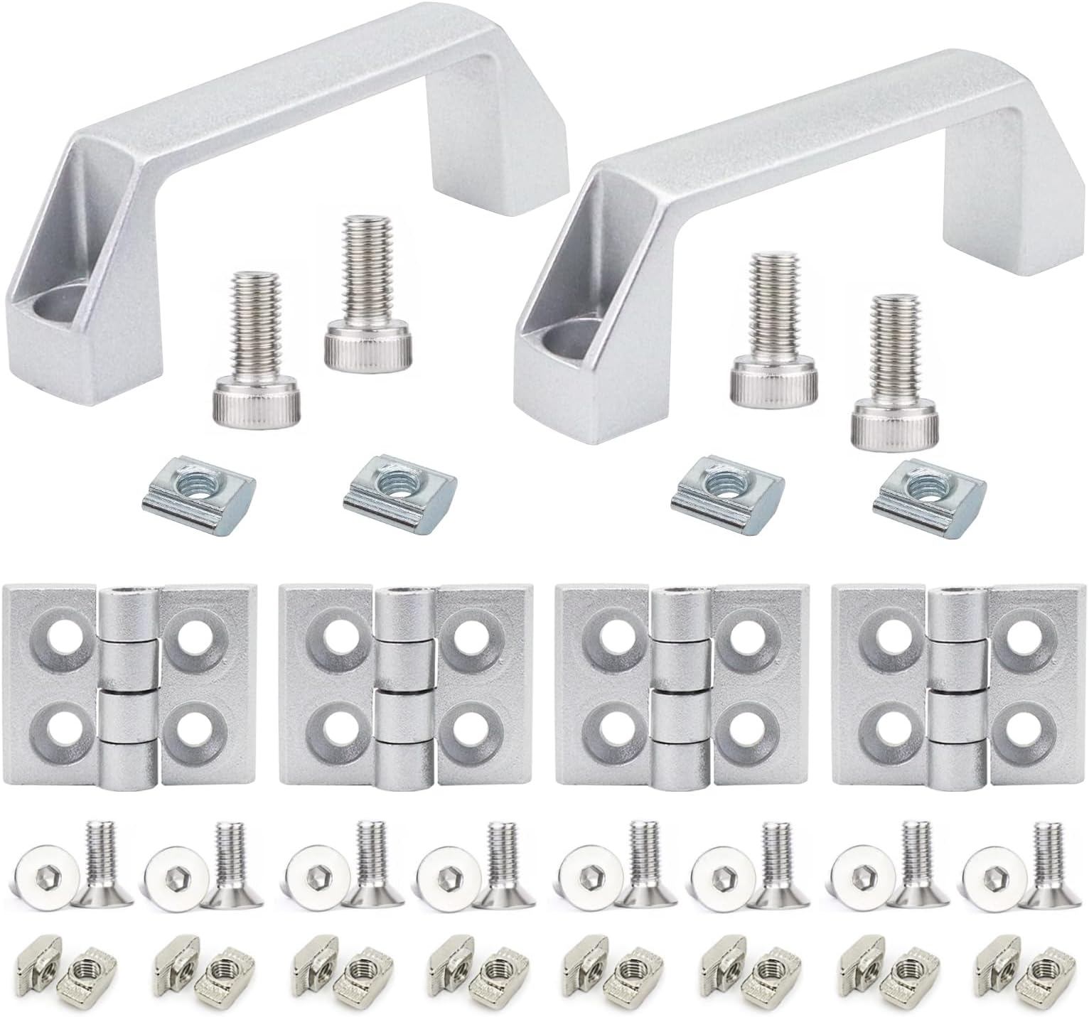 FORRCKY 4 Sets 1010 Hinges and 10 Series Extrusion 1.0 Inch Door Handles 1010 Aluminum Profiles Pivot Hinges with Nut for 10/10 1" x 1" Extruded Aluminum...