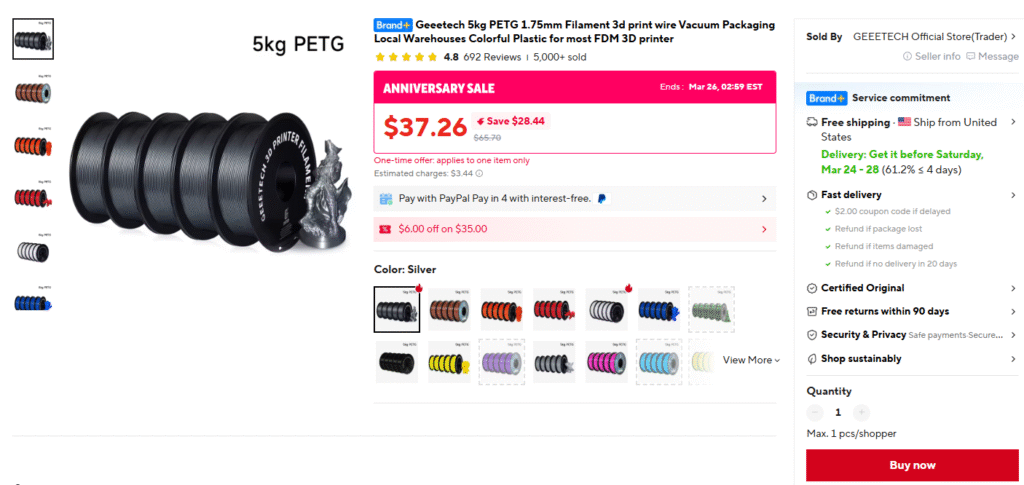 Geeetech 5kg PETG 1.75mm Filament 3d print wire Vacuum Packaging Local Warehouses Colorful Plastic for most FDM 3D printer