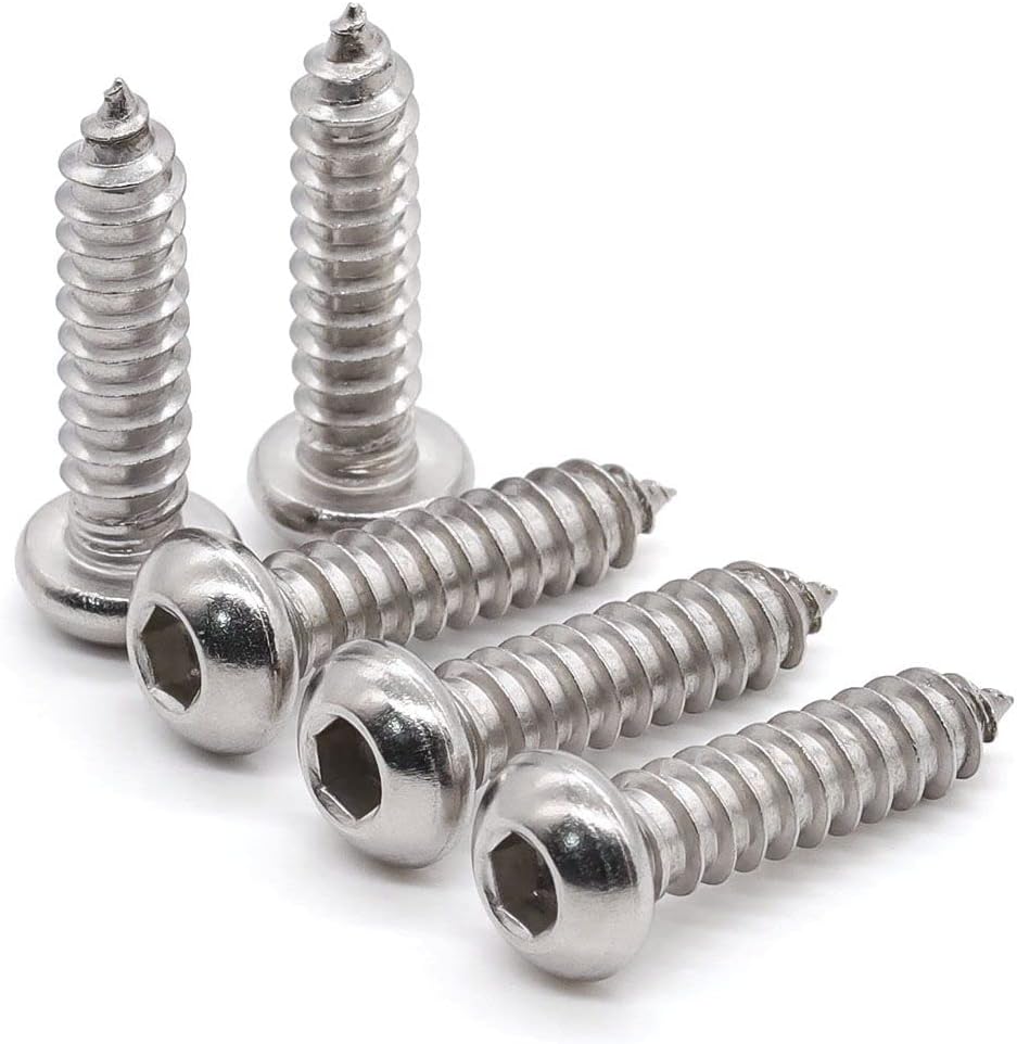 Glvaner (50 pcs) M5 x 30mm Button Head Socket Cap Self Tapping Screws 304 Stainless Steel 18-8 Wood Screws Sheet Metal Screws Full Thread Coverage