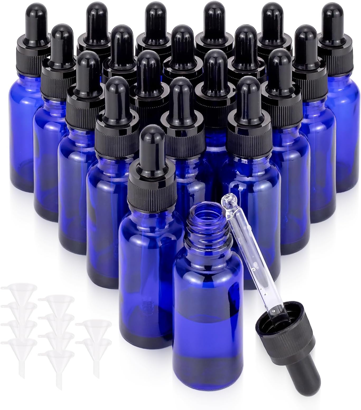 JIUWU 20-Pack 2/3 Oz Glass Dropper Bottle, 20ml Tincture Bottles with Droppers for Oils with 10 Funnels, Leak-Proof, Essential Oil, Liquids, Perfume, Sample-blue