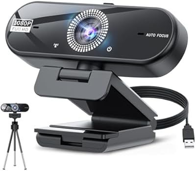 JMNGSHU 1080P Full HD Webcam with Auto Focus, 60fps, Dual Noise-Canceling Mics, Adjustable 110° FOV, 360° Rotation, Privacy Cover, USB Plug & Play,Webcam for...