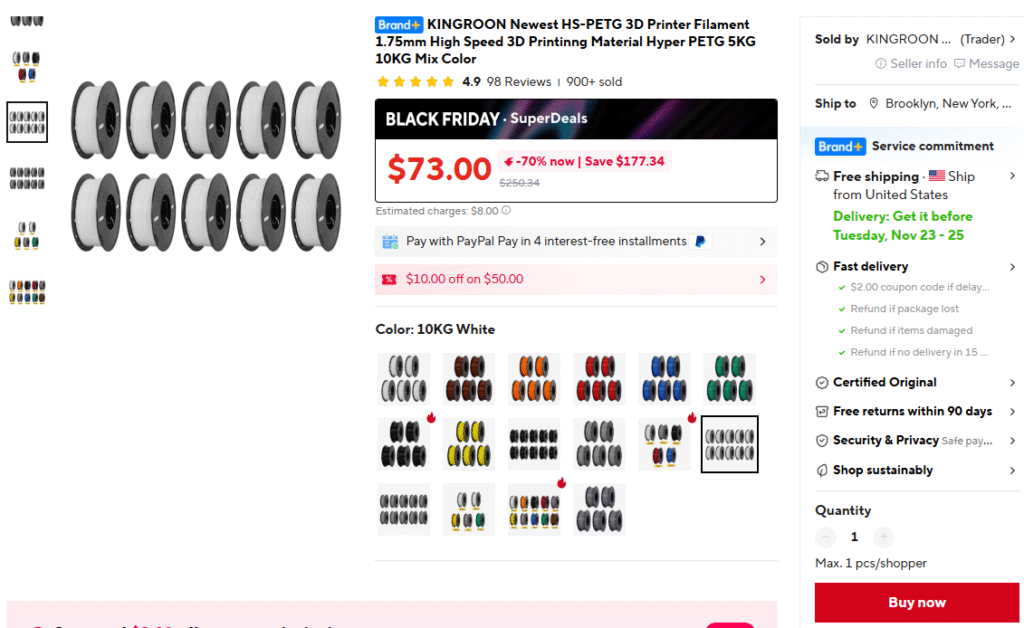 KINGROON High Speed PETG 10 packs (10kg).