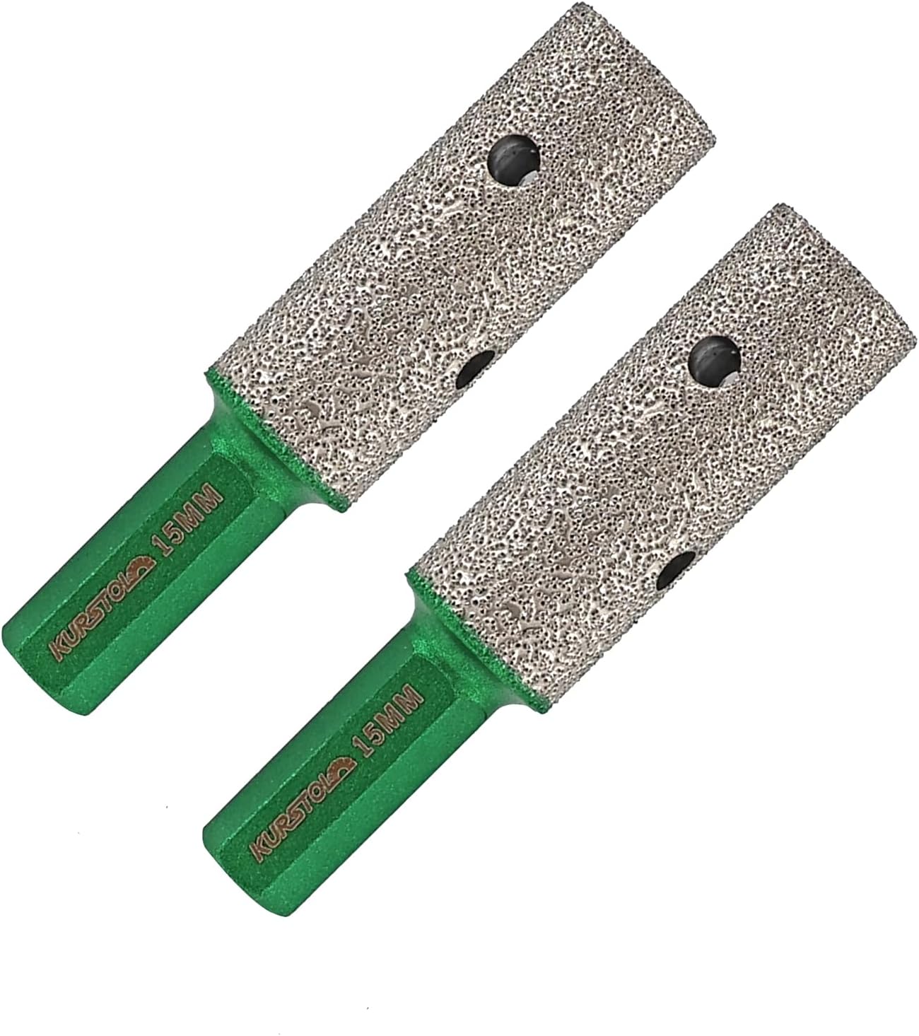 KURSTOL Diamond Coated Milling Bit – 2PCS Diamond Finger Bit for Enlarging, Shaping, Dia 9/16″(15mm) Hex Shank Tile Hole Grinder Round Bevel Existing Holes in Porcelain, Hard Ceramic, Granite, Marble