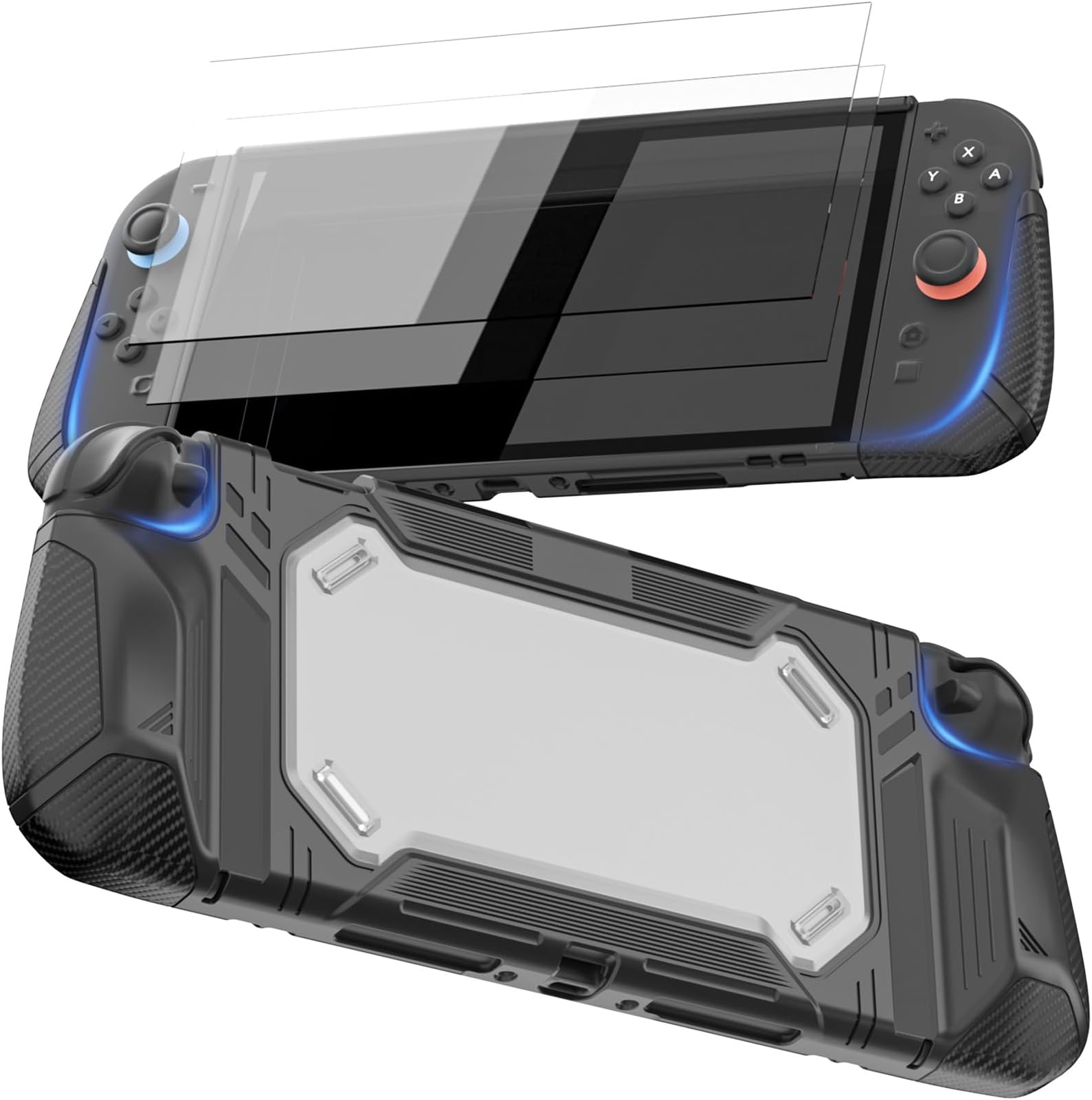 LuxiSync Protective Case for Switch 2 – TPU Grip Case with 2 Tempered Glass Screen Protectors, 8 Thumb Grips & 8 Dust Plugs, Shockproof Shell Accessories Set, Protective Shell Grip Cover for Switch 2