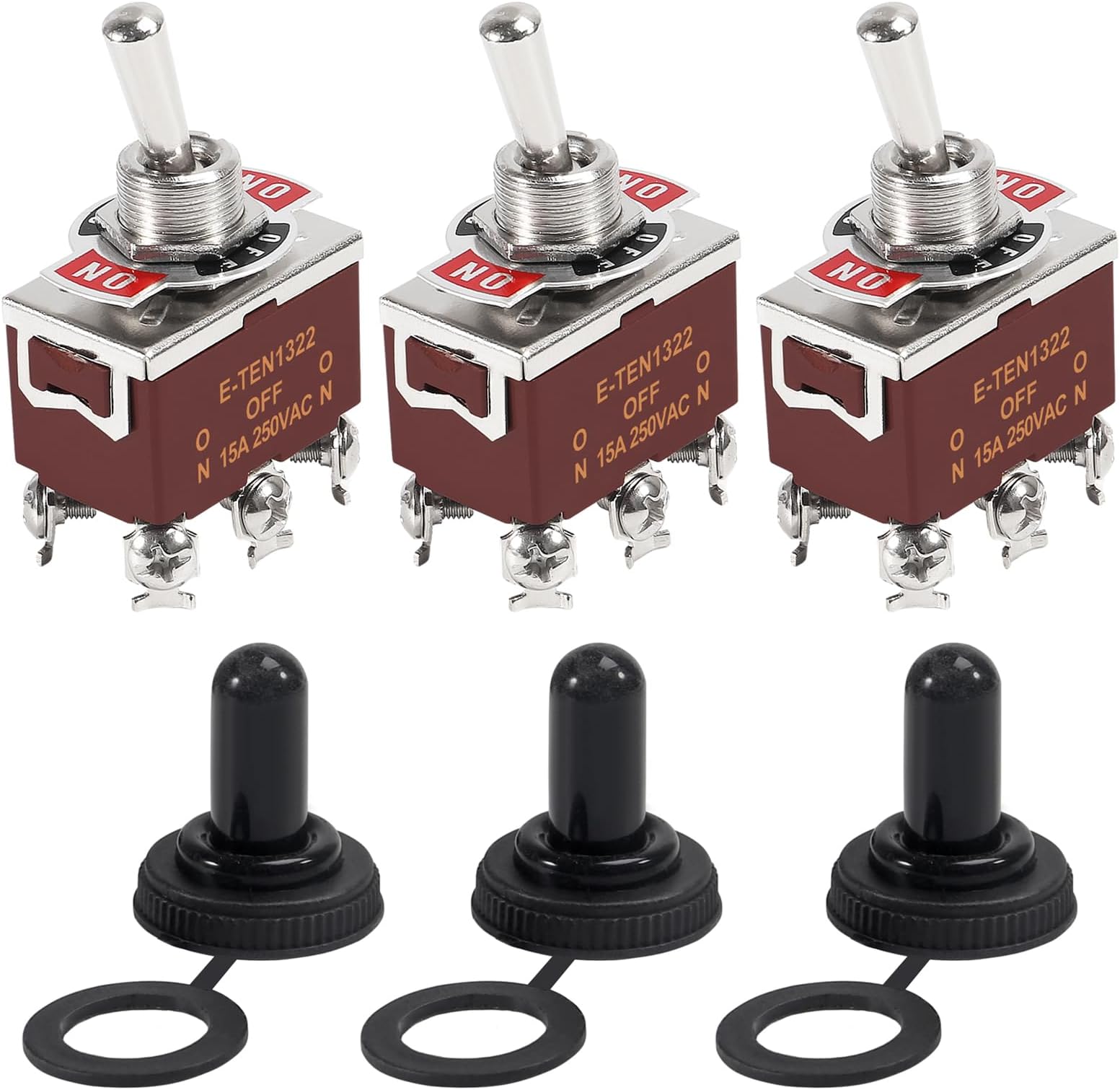 MELIFE 3PCS Heavy Duty Momentary Toggle Switch, 12V 6 Pin ON/Off/ON Switch with Weatherproof Boot Cap Cover for Car, Boat, Yacht, Vessels