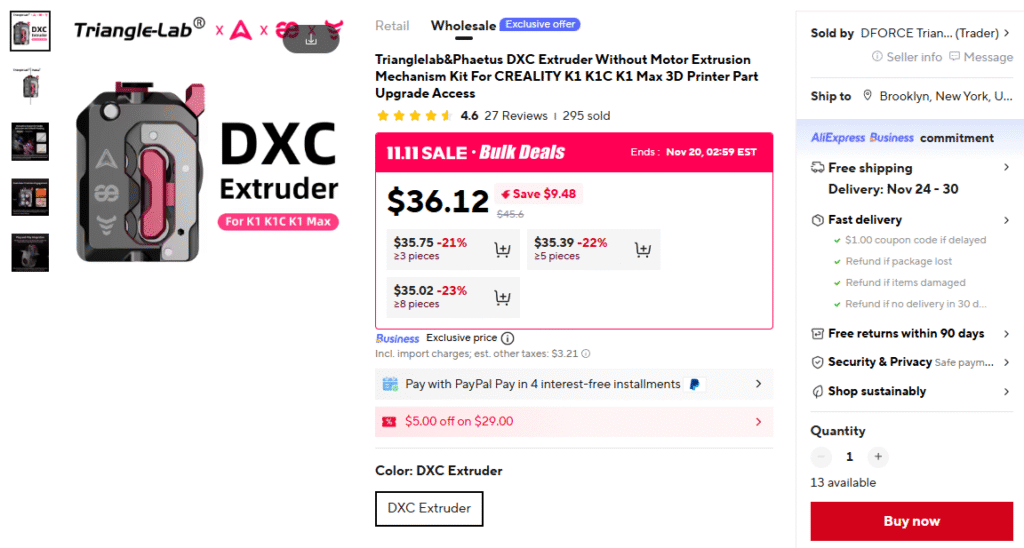 Trianglelab&Phaetus DXC Extruder Without Motor Extrusion Mechanism Kit For CREALITY K1 K1C K1 Max 3D Printer Part Upgrade Access