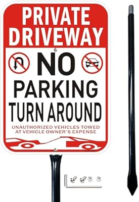 Private Driveway No Parking Sign, 14” x10” Private Drive No Turn Around Signs with 36’’ Strong Metal Stake, Fade Resistant Reflective Aluminum,Waterproof, Easy to Mount,1Pack