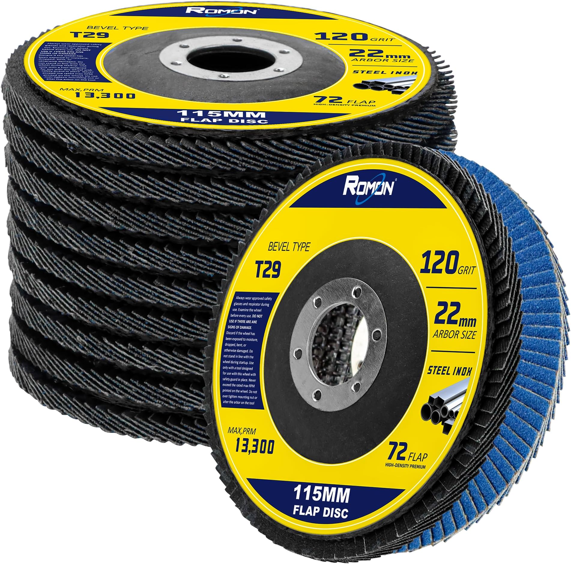 ROMON Flap Discs 4 1/2 Inch for Anger Grinder, 10 PCS 120 Grit Zirconia Grinder Sanding Disc, Industrial Grade Type 29 Abrasive Grinding Wheel for Stainless...