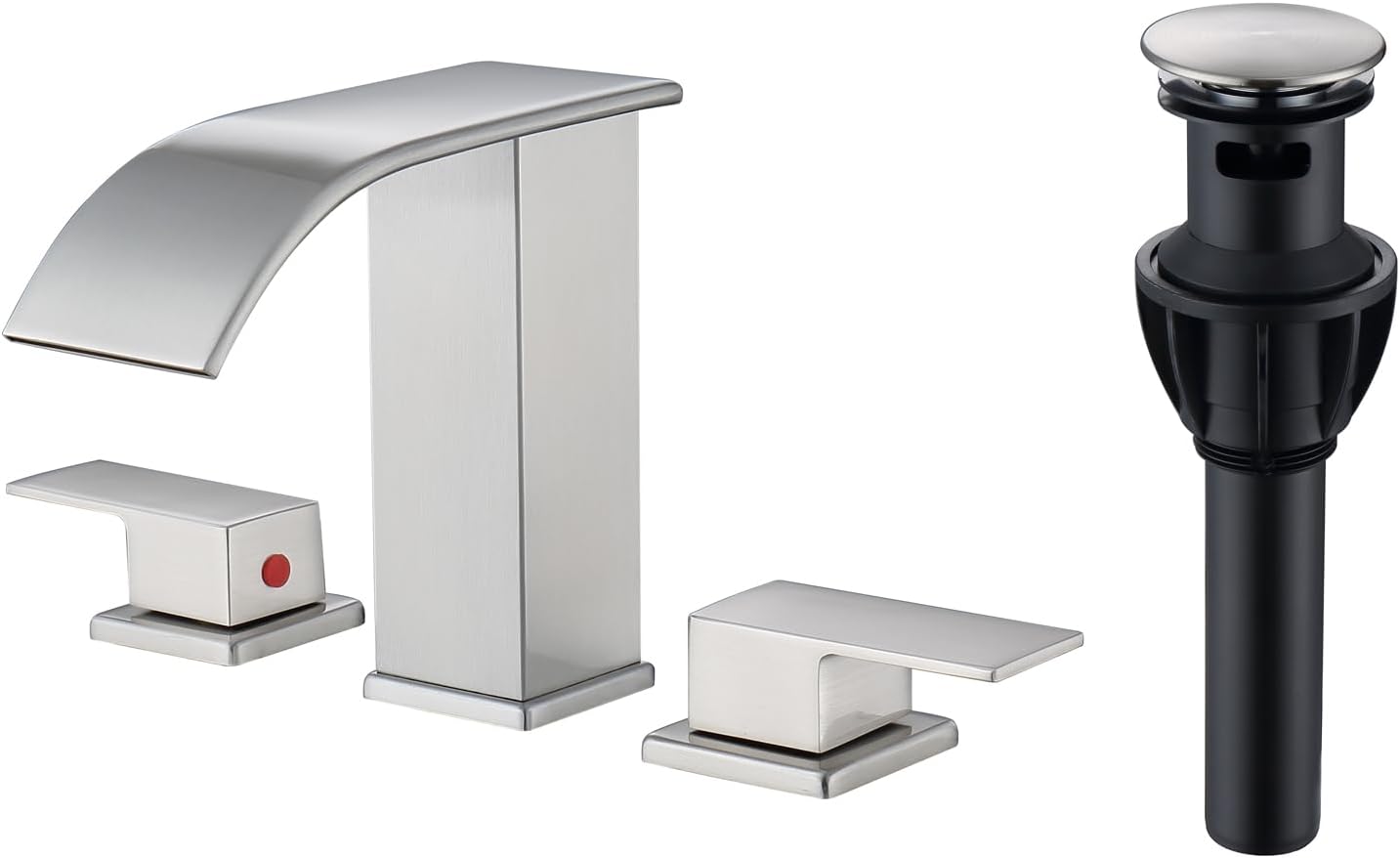 Rzoeox Brushed Nickel Bathroom Faucet for Sink 3 Hole, 8 inch Spread Bathroom Sink Faucet 2 Handle Waterfall Widespred with Pop Up Drain