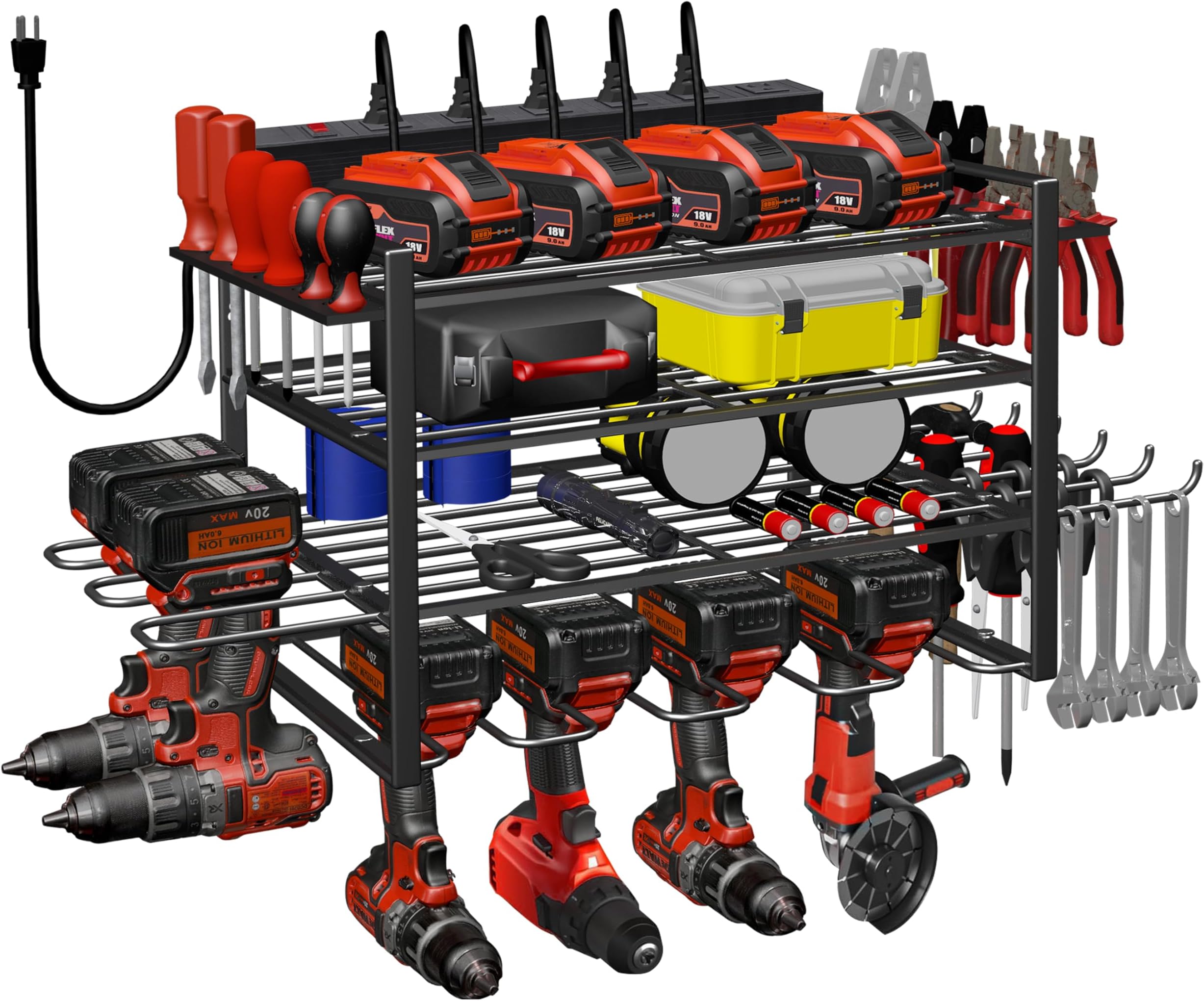 Spaclear Power Tool Organizer Wall Mount with Charging Station – 6 Drill Holders – Heavy Duty Modular Rack for Garage, Tool Storage Organizer – Gifts for Dad, Men, Husband, Anniversary, Fathers Day